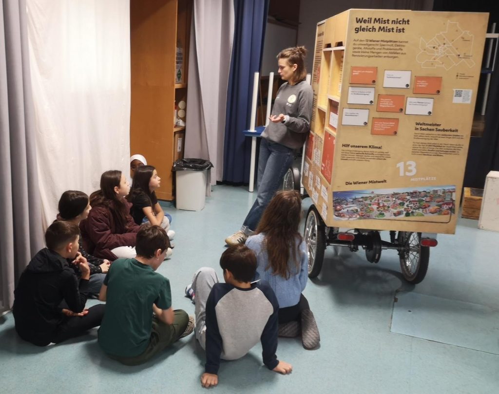 Am Dienstag den 7. Oktober war die Klimatour der Stadt Wien bei uns zu Besuch. An insgesamt vier Stationen, die allesamt auf E-Lastenrädern montiert waren konnten die Schüler*innen ihr Wissen zu Wasser, Müll, Artenvielfalt und dem Wiener Klimafahrplan vertiefen. Ein tolles Angebot welches die Klassen 1CDEF und 2AB nutzen und wovon sie viel für den Alltag mitnehmen konnten.